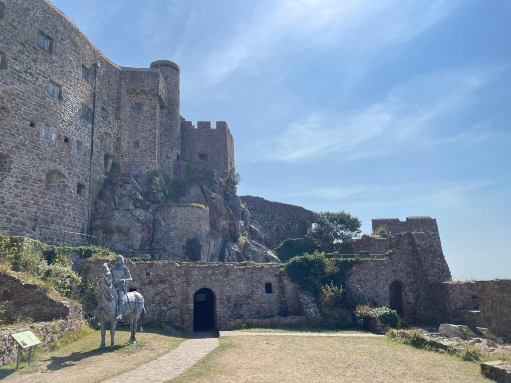 In La Hougue Bie angekommen, besuchen wir ein kleines Museum, in dem die Funde aus der Zeit der Römer ausgestellt sind und wo der grösste Münzschatz der keltischen Welt untersucht wird. Anschliessend spazieren wir zum eindrücklichen, prähistorischen Denkmal, wo wir durch das 6000 Jahre alte Ganggrab gehen und erkunden die darüberstehende mittelalterliche Kapelle. Auf dem Gelände befindet sich auch ein Bunker aus dem 2. Weltkrieg, in dem mit Informationstafeln und alten Gegenständen von der Zeit damals erzählen. Danach geht die Fahrt weiter entlang der Ostküste nach Gorey über dessen altem Hafen die Burg Mont Orgueil thront. Zwischen den Gemäuern, über Treppen und durch versteckte Räume steigen wir bis zur Spitze der Burg wo wir einen herrlichen rundum Blick über den Hafen, das Meer und die Küstenlandschaft geniessen.