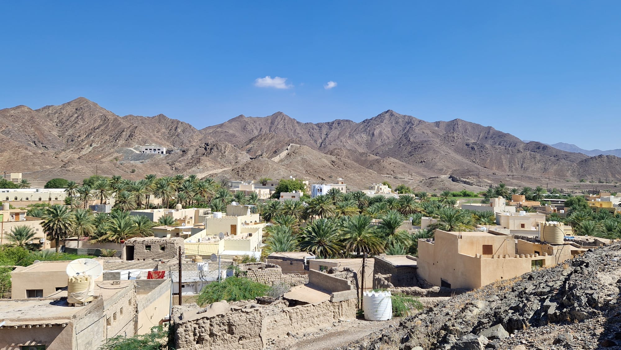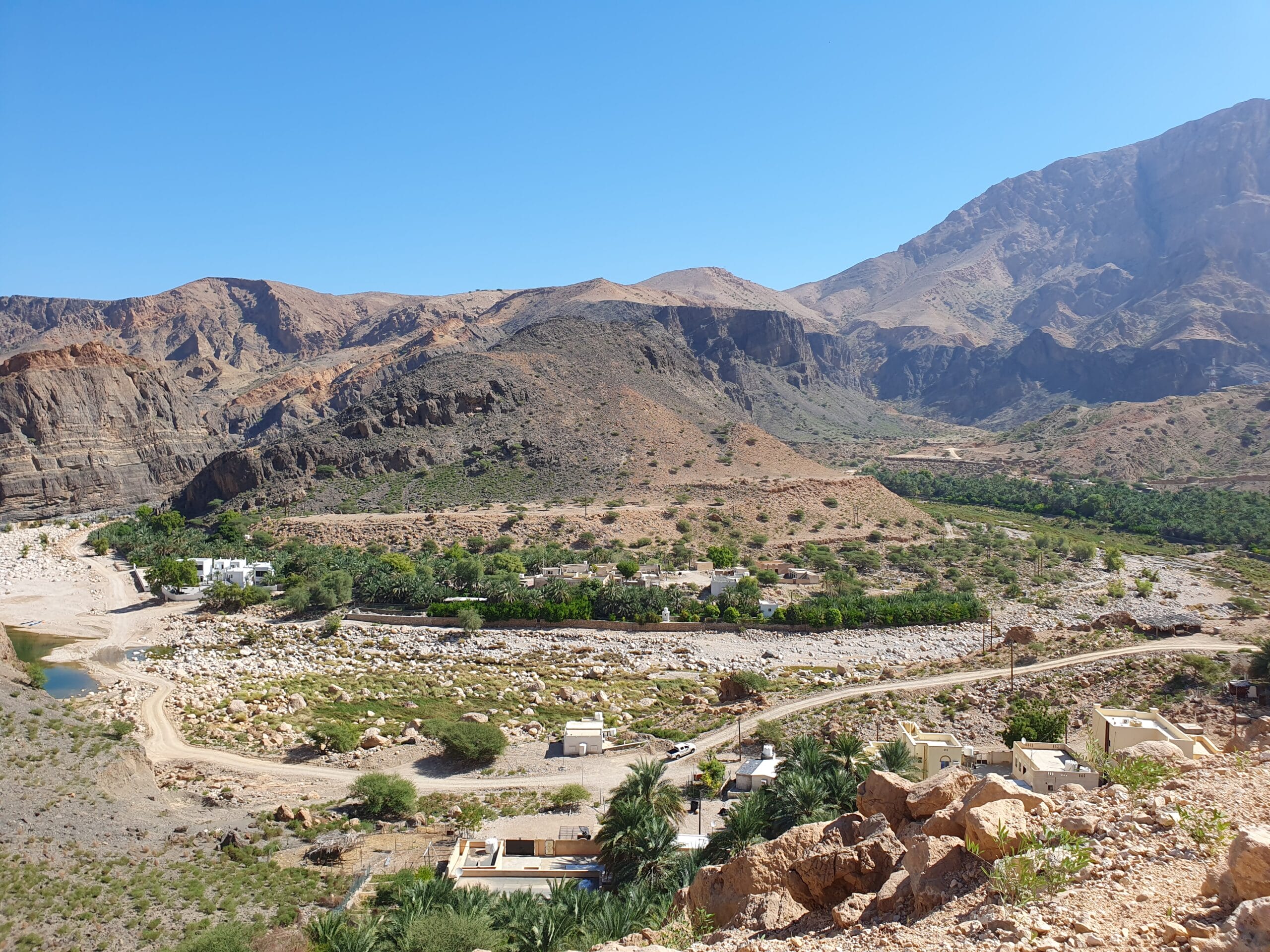 Am nächsten Morgen verliessen wir die Wüste und fuhren Richtung Jebel Shams, dem «Grand Canyon» Omans. Unterwegs besuchten wir das Bait Al Safah Museum und erhielten spannende Einblicke in das traditionelle Leben der Omanis. Dann ging es in die Berge, immer höher hinauf, bis zum Gipfel des Jebel Shams, wo wir eine grandiose Aussicht genossen und die kühle Bergluft spürten. Im Hotel liessen wir den Tag mit einem weiteren atemberaubenden Sonnenuntergang ausklingen.