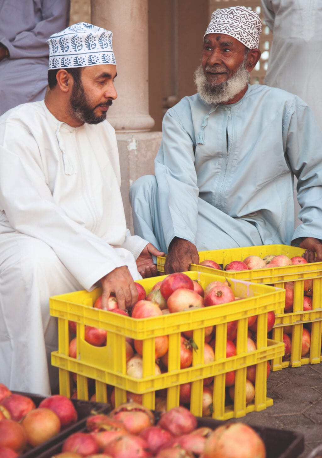 Früh am Morgen besuchten wir den Gemüse- und Fischmarkt in Muskat und fuhren dann in Richtung Sur. Unterwegs erkundeten wir verschiedene Wadis und hatten eine erfrischende Pause im beeindruckenden Sinkhole. In einem lokalen Restaurant stärkten wir uns, bevor es weiter zum nächsten Ziel, dem Wadi Tiwi ging. Im Hotel angekommen, genossen wir zur Erfrischung eine Limonana, das omanische Nationalgetränk aus Minze und Zitrone.