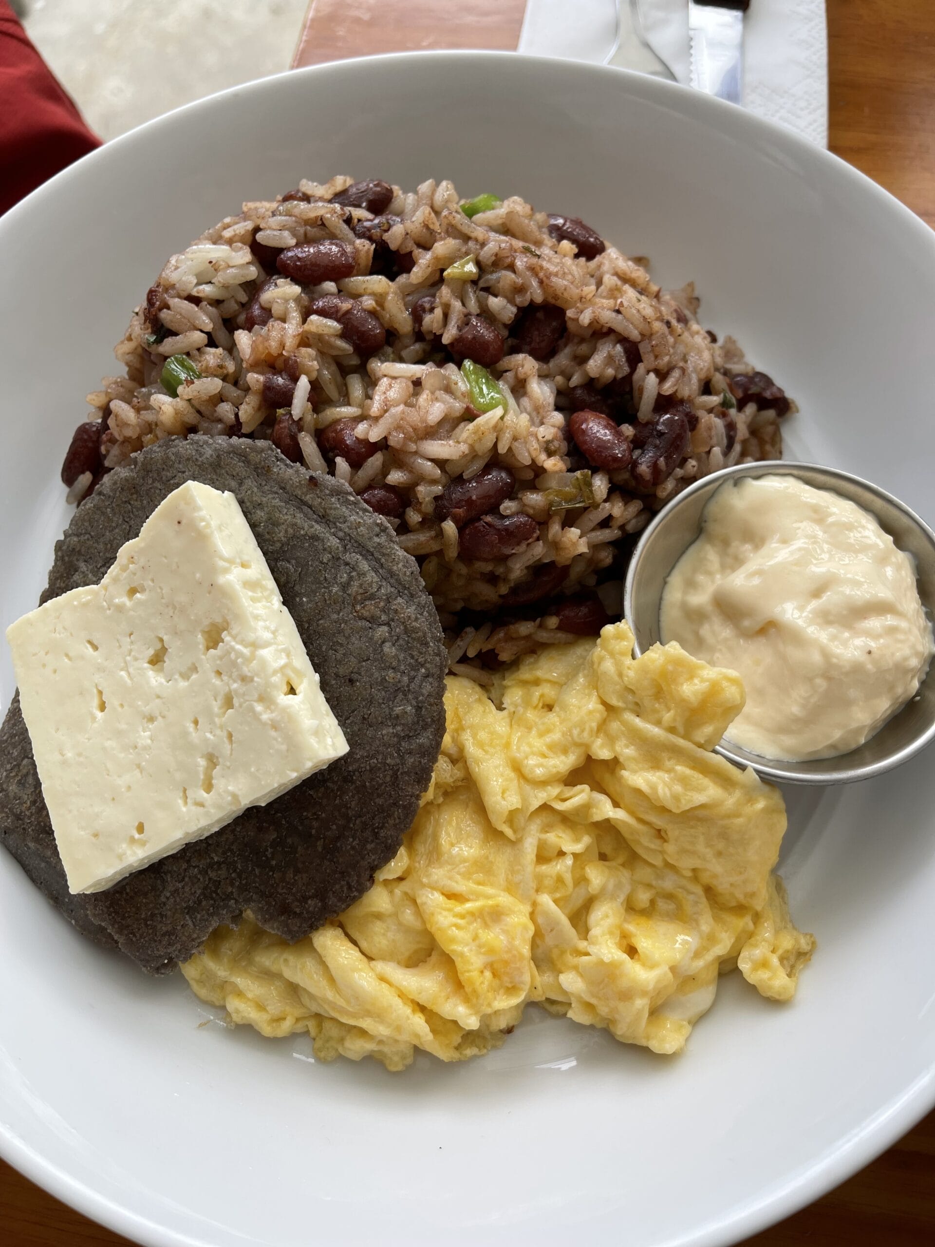 Nach einem frühen Frühstück werden wir von unserem englischsprachigen Guide abgeholt. Es geht an die Karibikküste, in den Tortuguero Nationalpark. Unterwegs gibt es ein typisch costa-ricanisches Mittagessen: Gallo Pinto mit Kochbananen, ein Reisegericht, welches Du während der ganzen Reisen immer wieder am Buffet finden wirst – auch zum Frühstück.