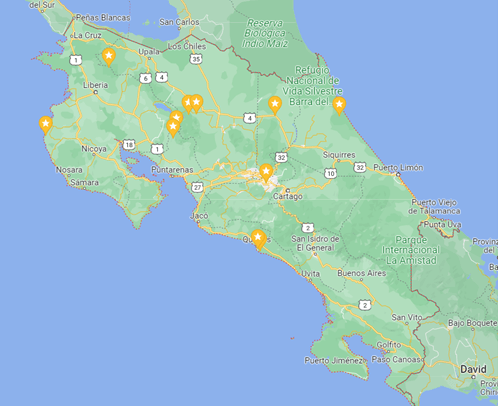 Die Hauptstadt San Jose ist Start und Ziel unserer Mietwagenreise. Nachdem wir uns über Nacht akklimatisieren konnten, erkunden wir die Stadt San Jose, bevor es am Folgetag weiter an die Karibikküste in den Tortuguero Nationalpark geht. Anschliessend geht es weiter nach Puerto Viejo de Sarapiqui, La Fortuna, zum Vulkan Arenal und dem dazugehörigen Nationalpark. Weitere Highlights sind Rincon de la Vieja und der Nebelwald Monteverde, welcher im bergigen und deutlich kühleren Nordwesten des Landes liegt. Zwischen den beiden Stopps haben wir ein paar Erholungstage am Strand von Tamarindo verbracht, bevor uns die Reise zum letzten Stopp unserer Reise bringt: Manuel Antonio mit seinem beliebten Nationalpark.