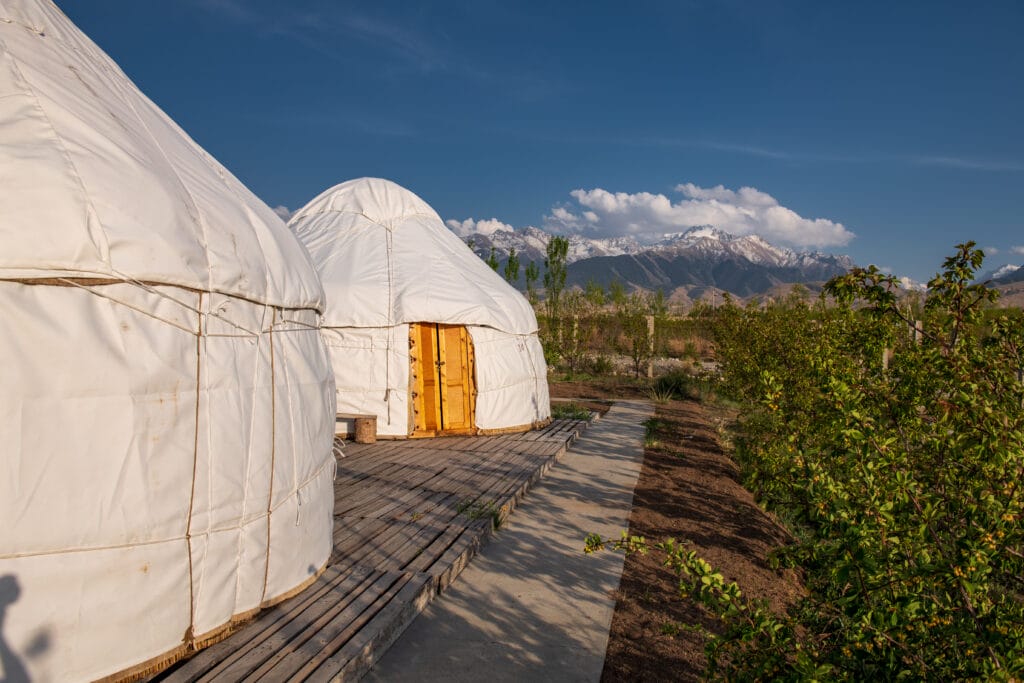 Als Gott die Welt schuf und das Land an die Völker verteilte, kamen die Kirgisen zu spät. Doch er hatte Erbarmen und gab ihnen einen Teil seines Paradieses ab. So zumindest die etwas selbstironische Legende. Doch bei der Fahrt auf 1600 Meter über Meer rund um den zweitgrössten Bergsee der Welt, dem Yssykköl-See, wird klar, dass das nicht von ungefähr kommt: Das Wasser funkelt in der Sonne, dahinter wechselnde Berglandschaften. Liebliche Lehmberge, rote Sandsteinfelsen und weisse Schneeberge. Der Yssykköl-See ist eingekesselt zwischen zwei Bergketten – nördlich der Kungej-Alatau und südlich der Terskej-Alatau mit Bergspitzen, die viereinhalbtausend Meter in die Höhe ragen.