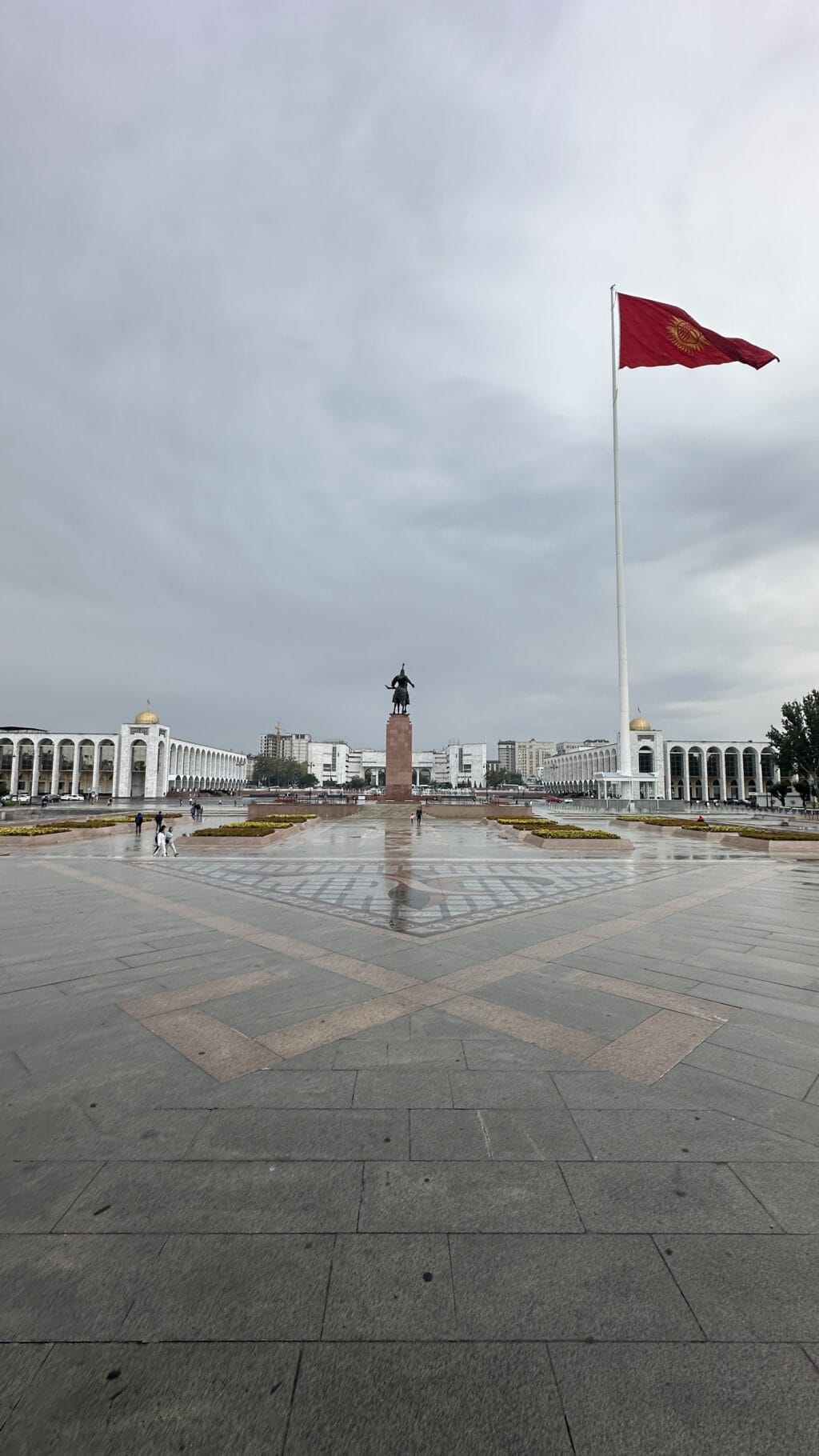 Bis 1925 lebte ein Grossteil des Volkes nomadisch und zog mit dem Vieh von Weide zu Weide. Als Teil der Sowjetunion wurde aber die Schulpflicht und damit die Sesshaftigkeit eingeführt. Heute leben im Land nur noch Halbnomaden – im Sommer flüchten sie mit ihren Tieren vor der Hitze in die Berge. Manchmal schlafen sie noch in der Jurte. Fast 80 Prozent der Bevölkerung arbeiten in der Landwirtschaft bzw. in der Viehwirtschaft oder im Gemüseanbau. Industrie gibt es nur wenig. Mit der neuen Seidenstrasse Chinas soll sich das aber ändern. Rund um den Yssykköl-See schlängelt sich eine kilometerlange Baustelle – das soll bald eine vierspurige Autobahn werden. Momentan treiben aber noch Bauern ihre Schafe per Pferd über die Schotterstrasse auf die Weide in der Nähe des Dorfes Tamchy. Zäune sucht man vergebens. Pferde, Schafe und Vieh grasen meist frei in der Herde. Was in der Landschaft aber auffällt, sind eckige Hügel und Ansammlungen von Steinen verschiedener Grössen, teilweise in Kreisen angeordnet. Der zentralasiatische Staat wurde von unterschiedlichen Kulturen und Völkern geprägt – die Hunnen und Karachaniden hinterliessen ihre Spuren in Form von Gräbern und Grabsteinen, auch Balbas genannt. Die Karachaniden waren Tausend nach Christus das erste Volk, das sich hier niederliess und erste Siedlungen baute. Sie brachten den Islam in das Gebiet. Davon zeugt auch eines der ältesten Minarette Zentralasiens, der Burana-Turm in der Region Tokmok. Die historischen Einflüsse spiegeln sich auch in der Hauptstadt Bishkek wider. In ihrem Herzen liegt der Platz Ala-Too, ehemals Leninplatz. Ala-Too heisst übersetzt «farbige Berge» – der Stolz des Landes. Der Platz ist eingerahmt von würfelförmigen sowjetischen Bauten, darunter auch das historische Museum. Mitten auf dem Platz thront der Flaggenstock, zur 100-jährigen Feier der kirgisischen Sozialistischen Sowjetrepublik dieses Jahr ganze 100 Meter hoch. Daran flattert die kirgisische Flagge: Roter Grund, der die roten Mohnfelder symbolisiert, und darauf eine gelbe Sonne mit vierzig Zacken. Jeder Zacken steht für einen kirgisischen Stamm. In der Mitte der Sonne ist ein Tündük abgebildet. Es ist das zentrale Element des Daches einer Jurte, welches das Ganze zusammenhält. Weiter vorne auf dem Platz, wo einst die Leninstatue positioniert war, steht jetzt ein Denkmal für das Epos «Manas».
